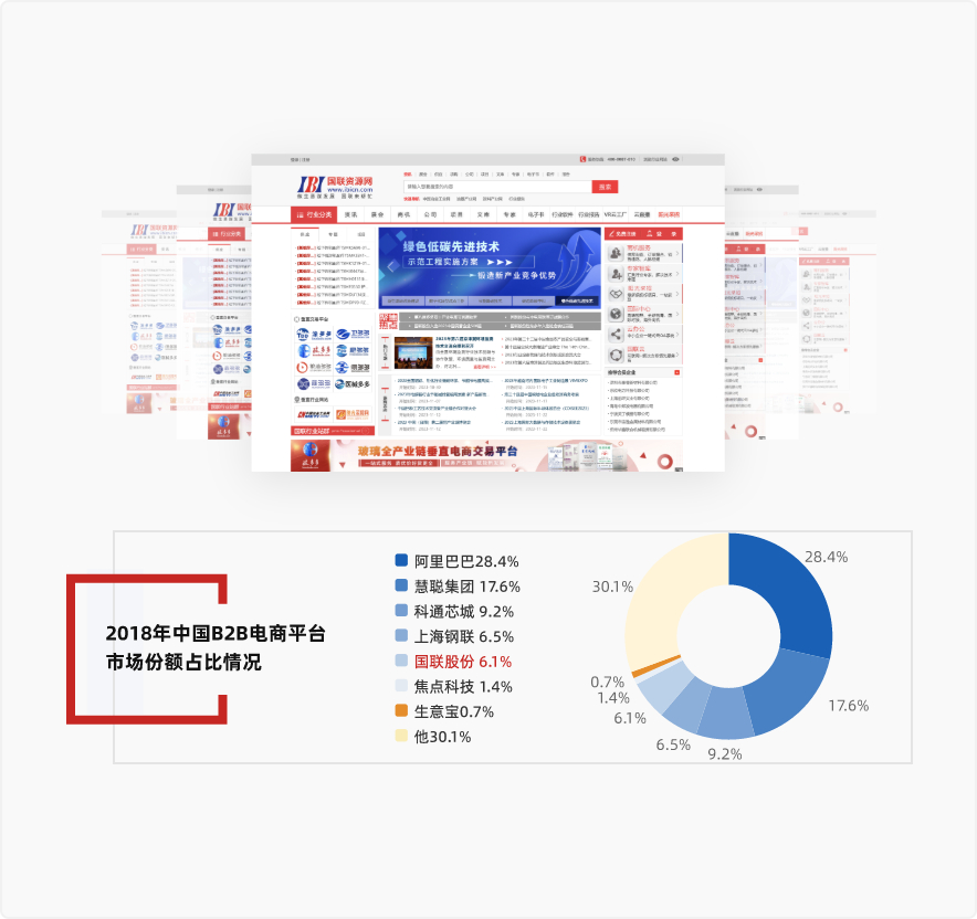 北京国联视讯信息技术股份有限公司(股票简称:国联股份,股票代码:603613.SH),领先的B2B电子商务和产业互联网平台。公司以工业电子商务为基础,以互联网大数据为支撑,为相关行业提供工业品和原材料的网上商品交易、商业信息服务和数字技术服务。公司致力于互联网、物联网、大数据、云计算、人工智能等新技术与传统产业的深度融合,实现促进传统产业降本增效的价值使命。