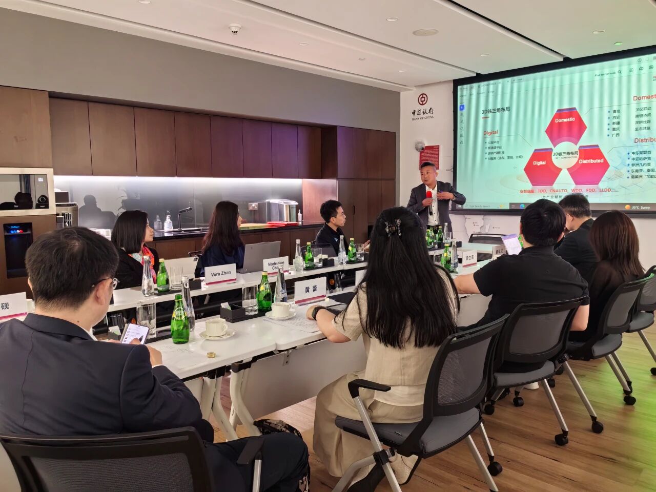 在与中行、渣打、德勤等机构的座谈会上,崔向华副区长指出,依托“一带一路”倡议,企业“走出去”已成为拓展发展空间的重要趋势,丰台区将持续搭建政企对接平台,为辖区企业海外布局提供政策支持与资源协调,助力产业优势与国际市场需求精准匹配。会上,张伟还以《国联股份产业数字化跨境的践行》为题开展路演,重点阐述公司PTD(平台、科技、数据,国联股份核心发展战略)与EHS(引擎、枢纽、方案,跨境业务支撑体系)在跨境场景中的融合应用。他强调,国联股份将通过两大体系深度协同,为丰台区轨道交通、生物医药、二手车等优势产业集群提供定制化数字化基础设施服务;下一步还计划在迪拜升级建设产业服务基地与海外仓服务中心,进一步完善跨境服务网络,为区域培育跨境出海新质生产力贡献力量。
