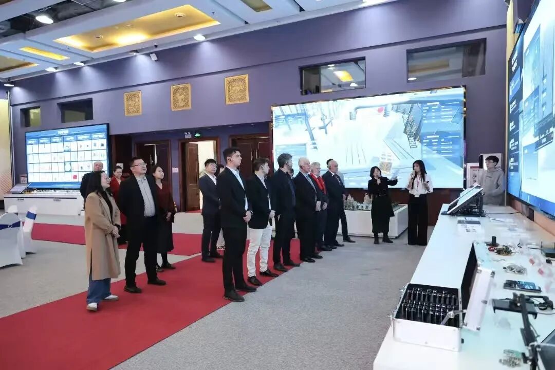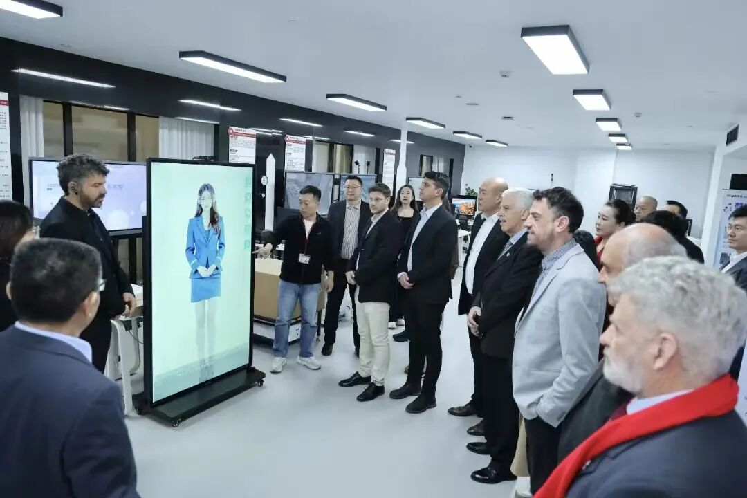 La delegación visitó primero la sala de exhibición de economía digital y el pabellón de experiencia de integración digital-real, conociendo a fondo el modelo operativo de IBI Group y la plataforma DuoDuo, las estrategias de operación transfronteriza de clusters industriales, y las aplicaciones técnicas y estrategias prácticas de Guolian Cloud.